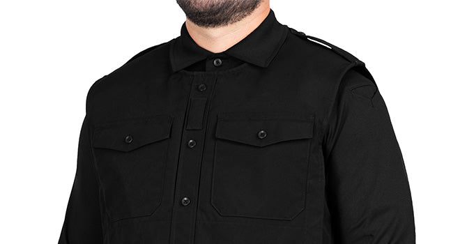 The front placket offers functionality while maintaining a professional uniform appearance. It includes durable melamine buttons, a mic loop, document pockets, and hook/loop front pockets for easy access to essential gear.